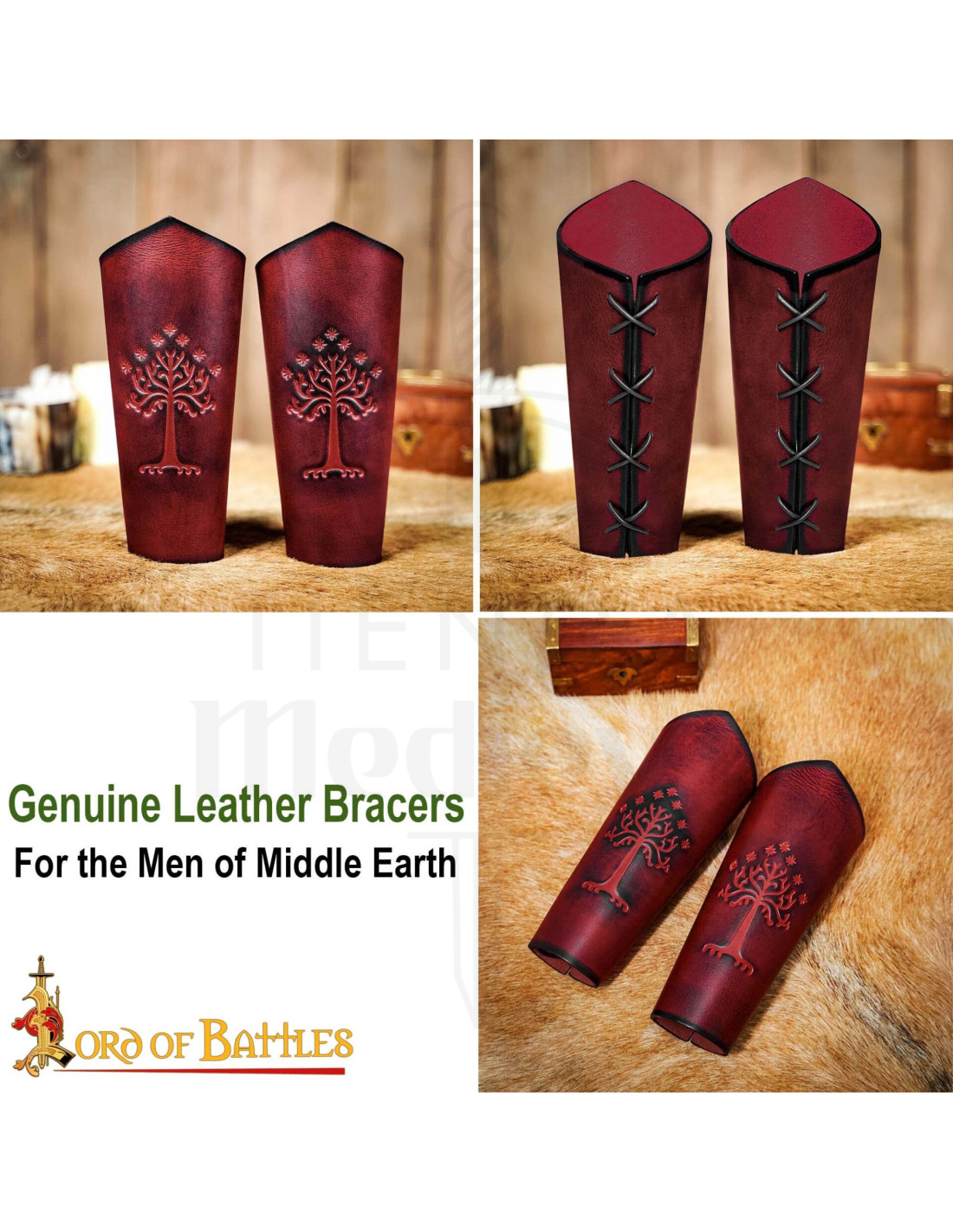 Estas braçadeiras feitas de couro genuíno refletem um trabalho artesanal que honra a iconografia de Minas Tirith, com a árvore estilizada e as sete estrelas em relevo, símbolos de resistência e honra. Sua estética conecta-se com o universo da Terra Média, evocando a épica e a nobreza de Gondor, o que acrescenta um valor emocional para cosplay, LARP ou colecionadores que apreciam réplicas com significado.