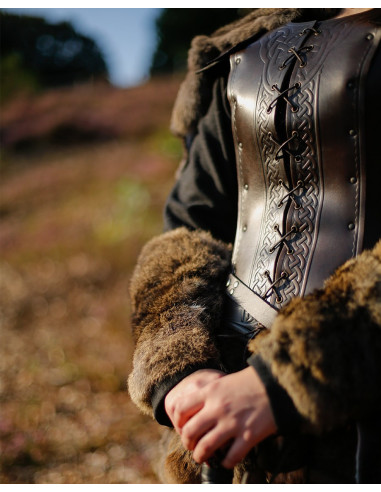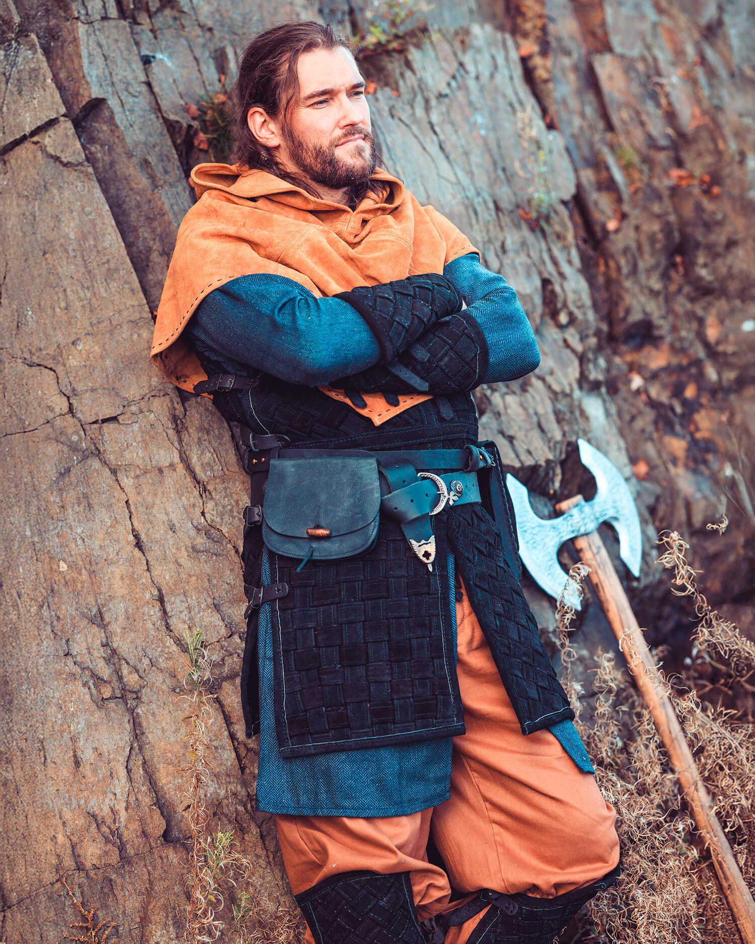 • Sensação confortável ao usá-las durante horas, graças a materiais que respeitam a pele. • Ajuste versátil que permite sobrepor sobre diferentes camadas de roupa ou armadura. • Estética cuidada que reforça a personalidade do traje medieval ou fantástico.