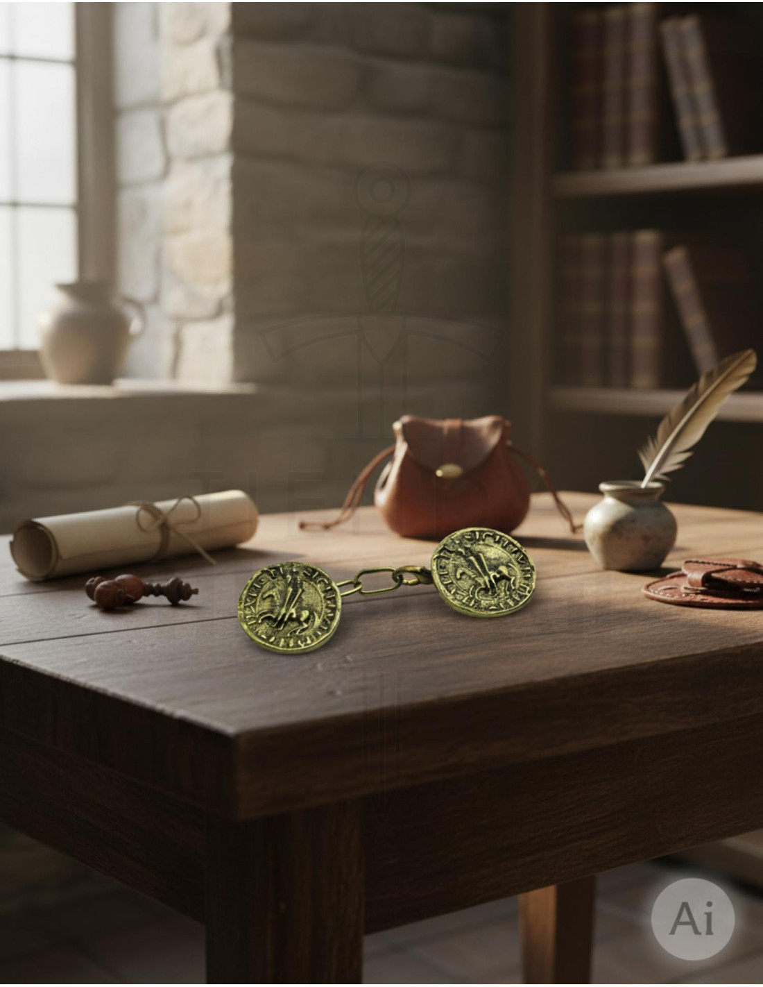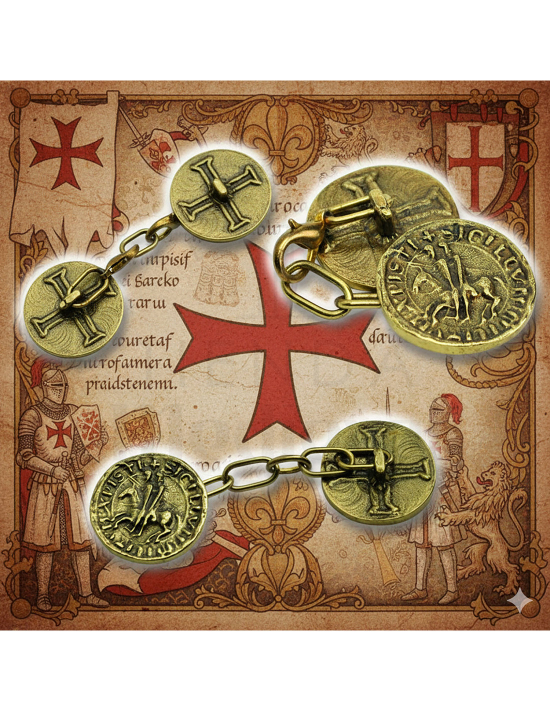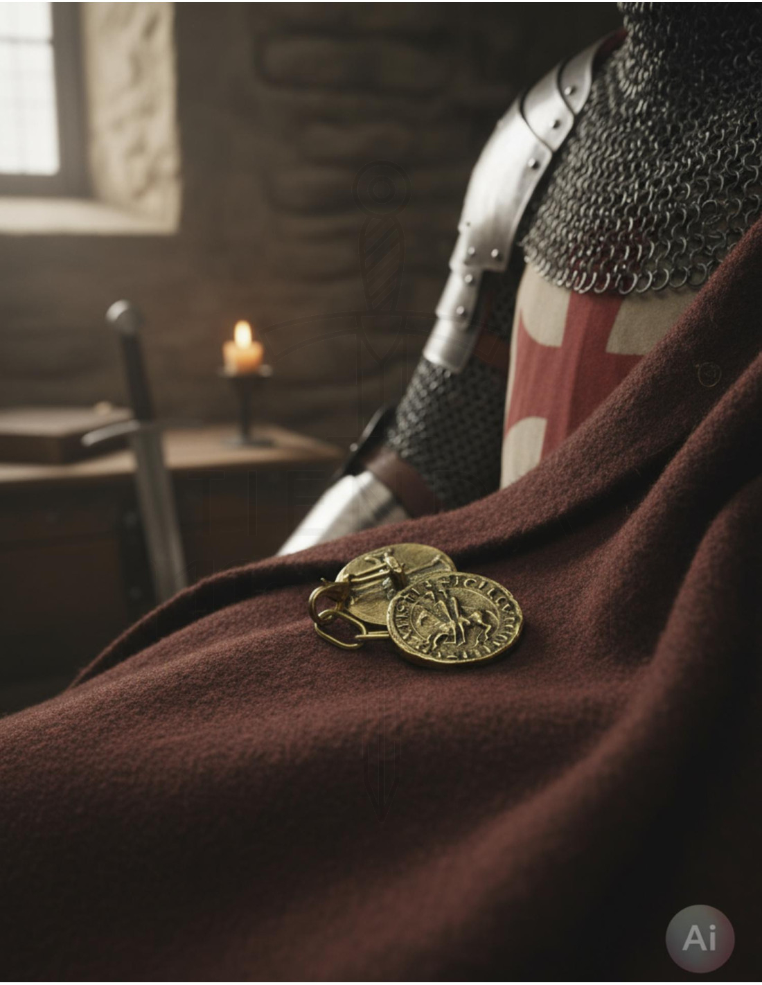 Não perca a oportunidade de usar um autêntico selo templário em sua capa. Adquira já este fecho de capa com selo templário e dê um toque de mistério e elegância às suas roupas.