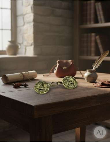 Você é apaixonado pela história e mistérios dos Templários? Então este Manto Manto com Selo Templário é perfeito para si. Fabricado em latão envelhecido, este fecho de capa tem um diâmetro de 4 cm, o que o torna ideal para qualquer tipo de capa ou peça de roupa que pretenda decorar.
